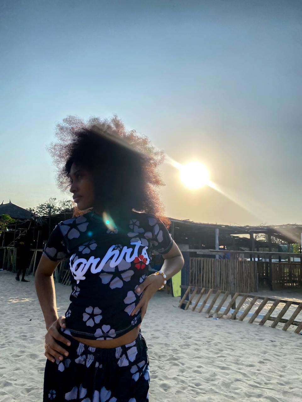 COMFORTABLE FIT WITH EMBROIDERY. MODEL WEARING XS
